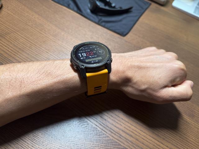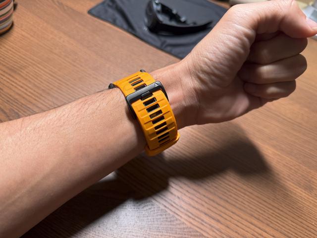 用过Fenix 7的应该对7自带的硅胶表带有印象,手感不错,长时间不算难受,出汗也不会有问题。8的表带感觉材质更软,纹理也有所不同,相当于是7的硅胶表带的升级版。
