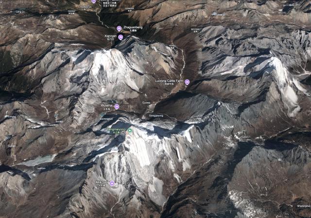 Another snow mountain (Chinese: 白马; Pinyin: Baima; white horse) to the south of the Meili range. It “only” rises to 5,430 metres.
