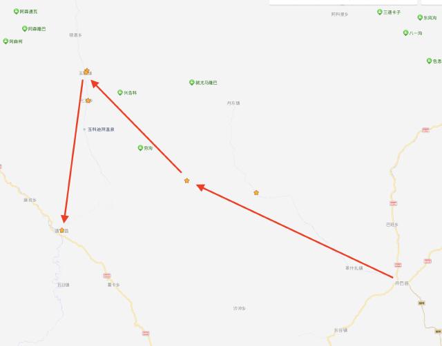 - 玉科镇 - 七美乡 - 道孚县 (第三段红箭头,全程油路)