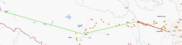 目前这一段,只走了下图中红箭头的一部分,绿箭头两段可以川藏中线西藏段走到拉萨然后阿里中线走到阿里: