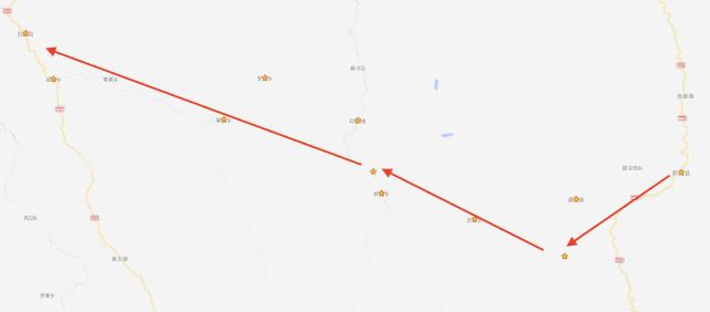 - 打枪棚子 - 雪槽 - 解放一村 - 捧塔乡 - 金汤镇 - 姑咱镇 (第三段红箭头)