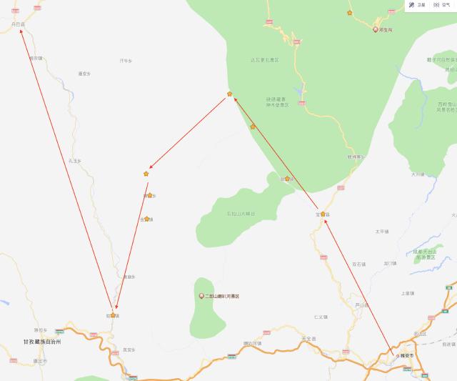 - 雅安走G351熊猫大道国道北上到宝兴县(第一段红箭头)